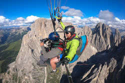 Mit dem Gleitschirm flog er die gigantische Nordwand des Langkofels hinauf, und in den senkrechten Wänden der Dolomiten lockten ihn mehrtägige, verwegene Klettersteig-Abenteuer sowie Genuss-Kletterrouten an den Vajolettürmen oder den Drei Zinnen. Mit Schneeschuhen erkundete er die unberührte Winternatur.